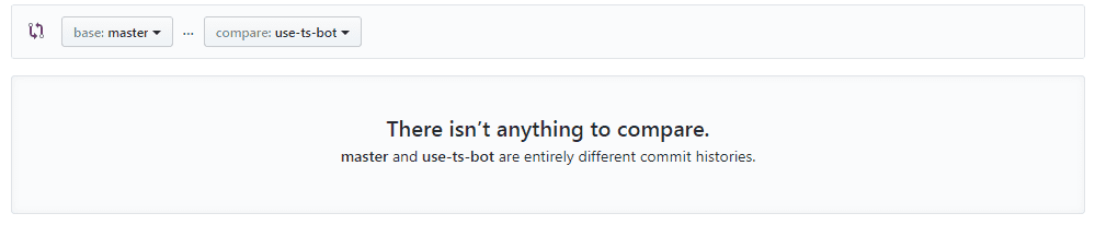 There isn’t anything to compare? Bit misleading there as there is but the commit histories are different. How do you get around it, well the first Google result was a bit sparse with the details but then I found this which was more helpful. I needed to merge the disparate branches which is now disabled by default in git but can be enabled with the —allow-unrelated-histories flag.