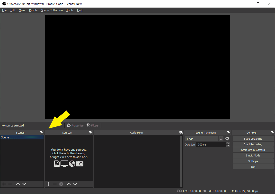 Check the video here on setting up your first OBS Scene:
