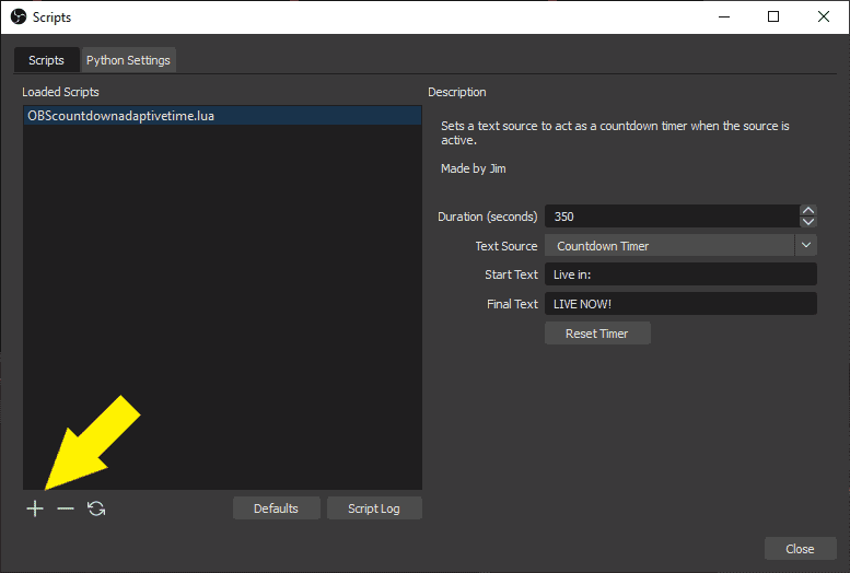 If you’re streaming and want to have a countdown timer, there’s a script you can use in OBS available for download in the OBS forum resources section which is pretty neat, download that for use later.